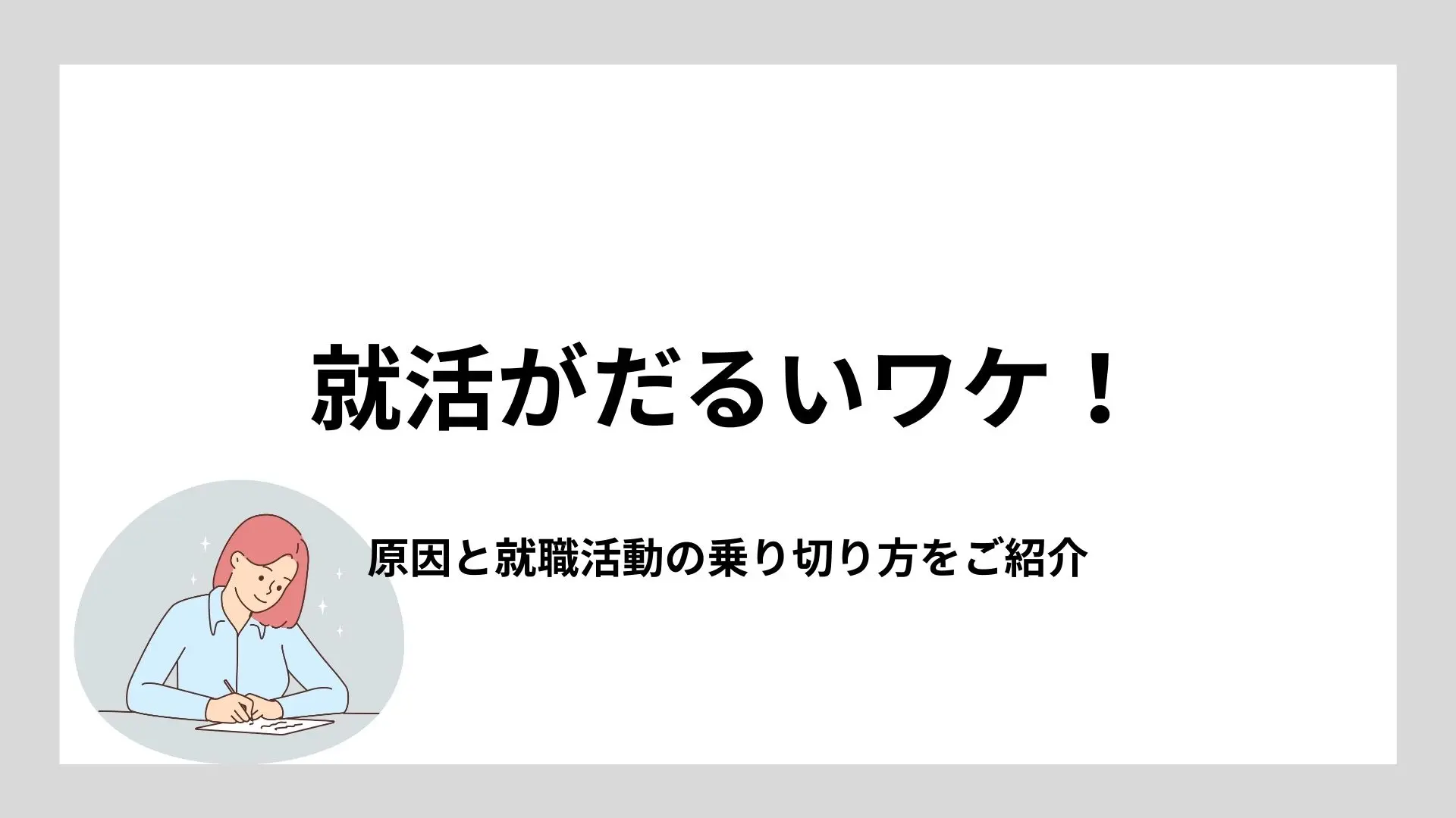 就活がだるい…もうやりたくない…。そんなお悩みを抱えている就活生はいませんか?就活は一定の大変さがあるため、だるい・つらいと感じることは多々あるでしょう。大変なときは、できるだけだるさを軽減して乗り切ることが大切です。